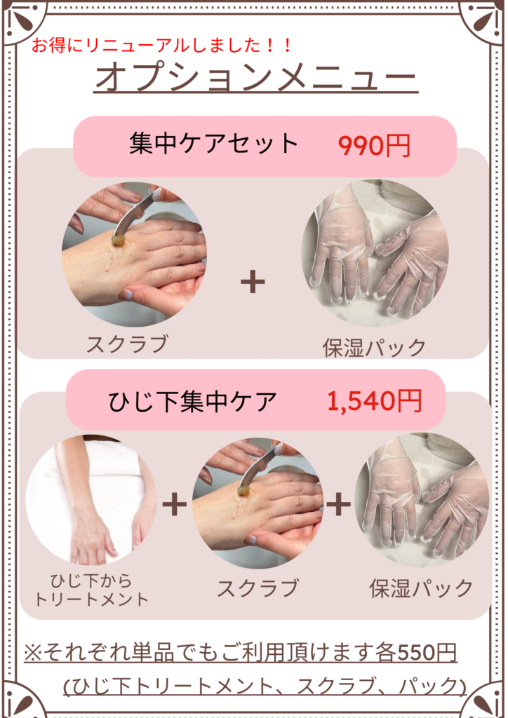 以前からご用意していたオプションケアメニューをリニューアルいたしました。